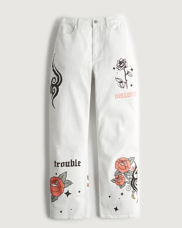Women S Ultra High Rise Medium Wash Doodle Mom Jeans Women S Clearance Hollisterco Com
