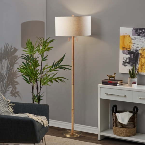 Natural Wood And Brass Floor Lamp 66 In Kirklands Home